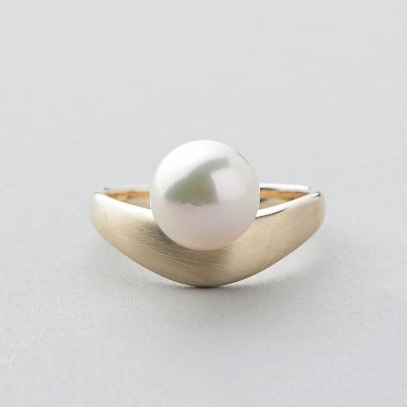 ・滑らかなフォルムと、繊細な質感のゴールドのテクスチャーがすっきりとマッチしたリング。