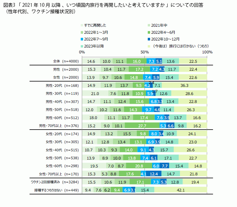 - 旅行再開は “22年春” が多数派、4分の1が “年内再開”