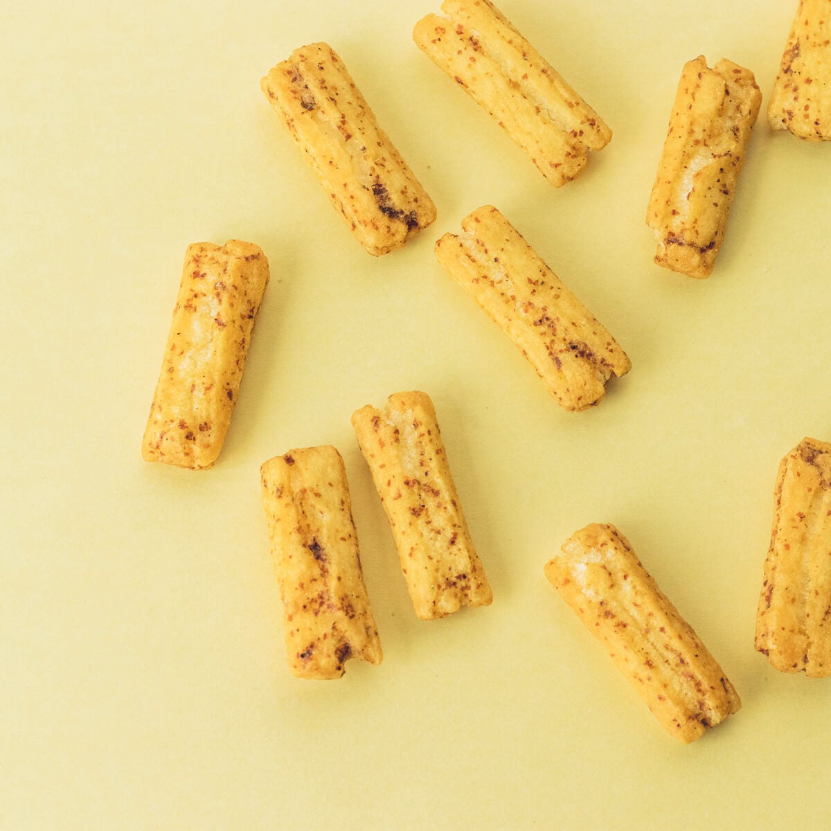 お米本来のおいしさを活かすため、生地作りから味付けまで一貫して同じ工房で作られたおかきです。マヨネーズ、粒マスタード、はちみつをあわせて洋風のお味に。軽い後味の秘密は、国産有精卵で作られたあっさりまろやかな風味のマヨネーズです。