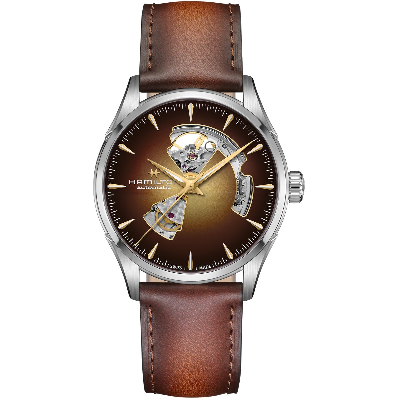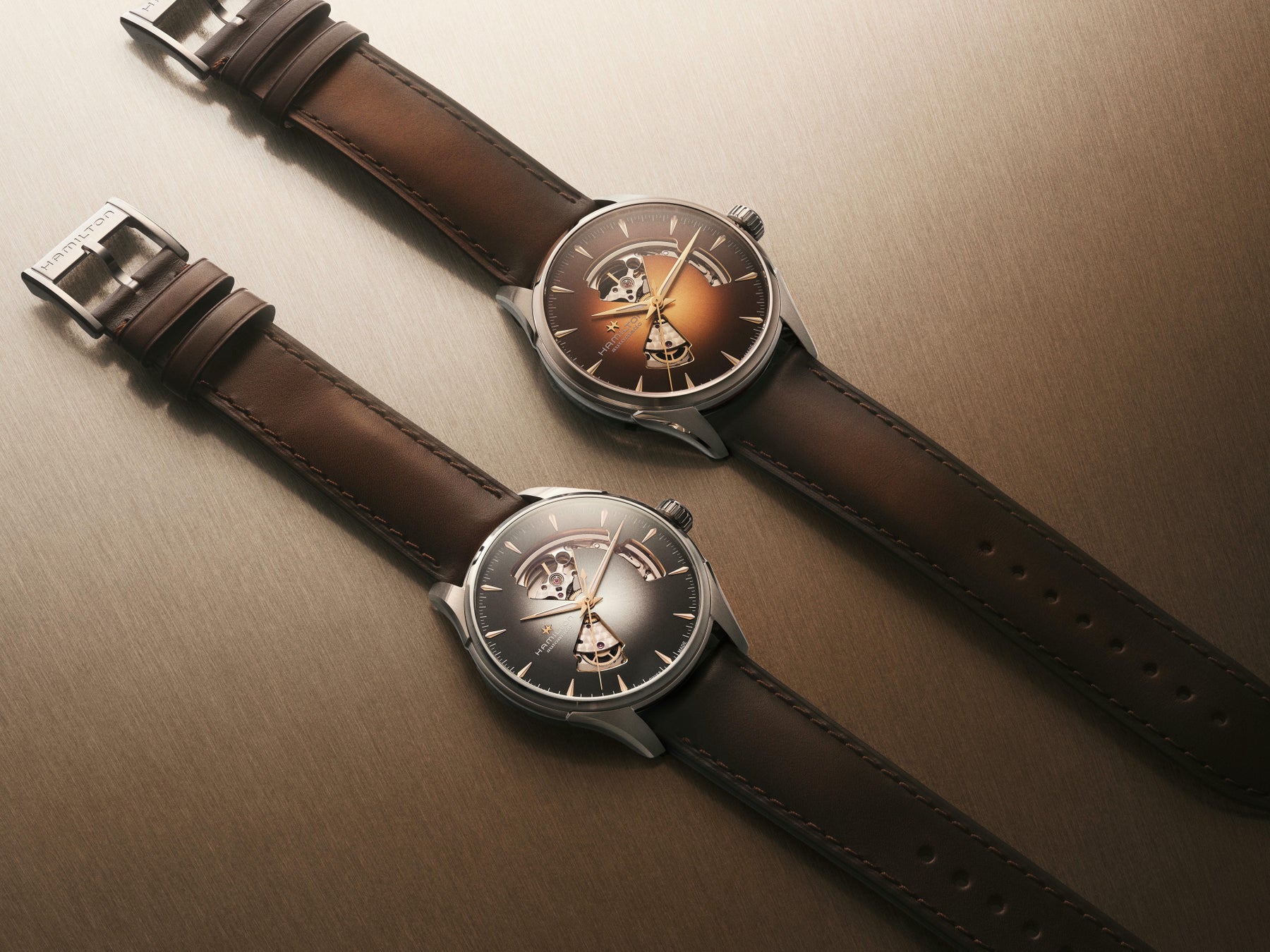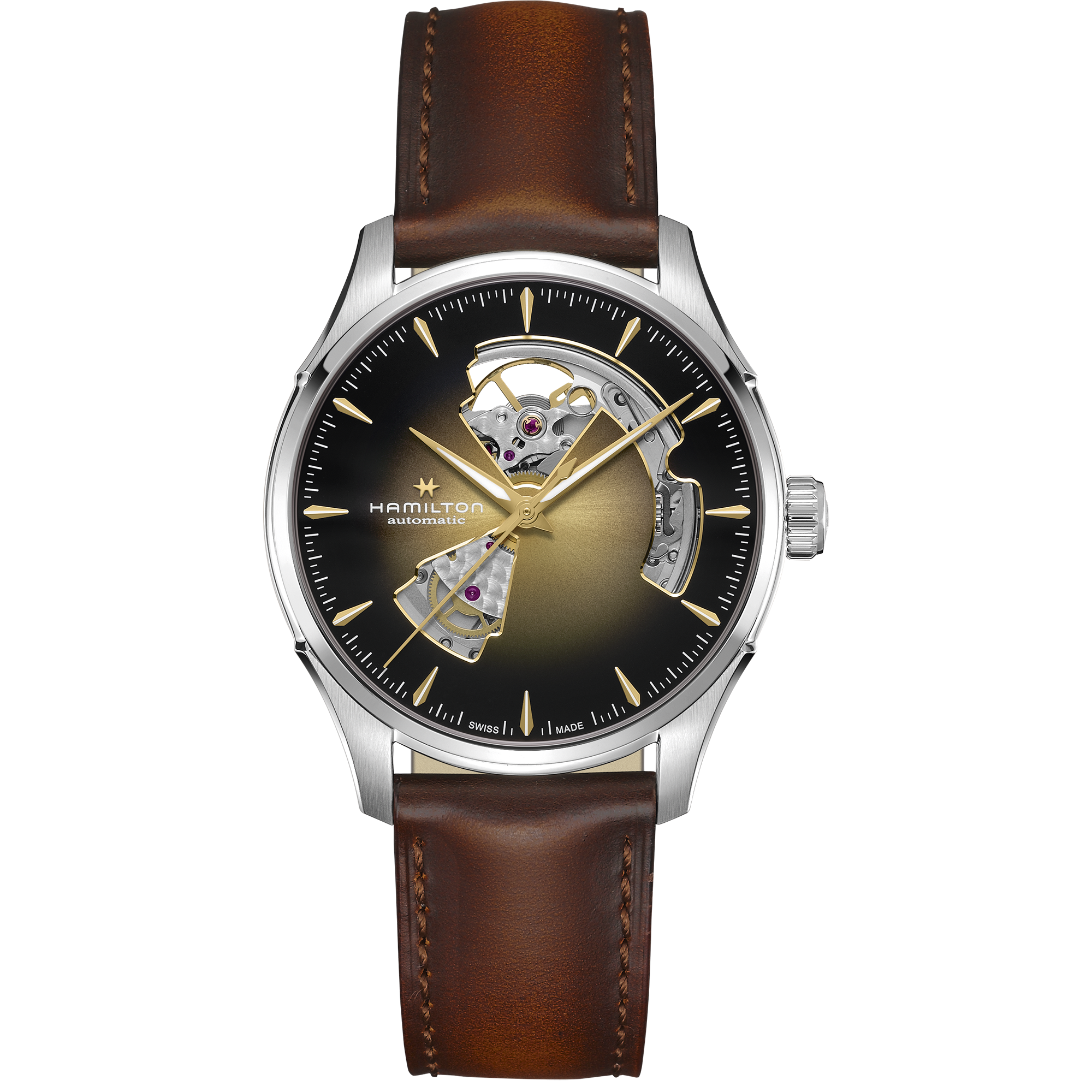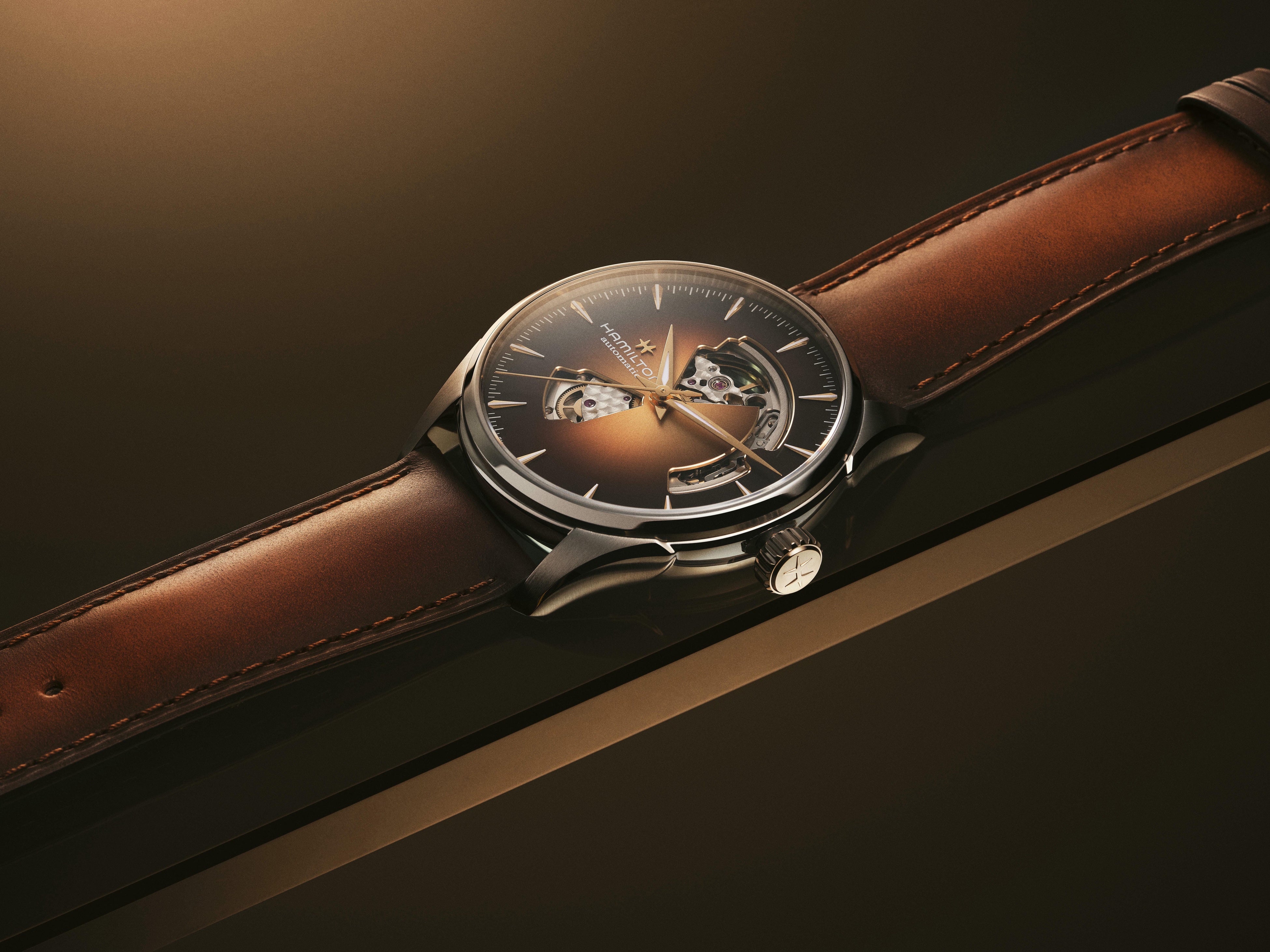 クラシックなデザインとモダンな表現が交差する場所に常に立ち続けてきた「ジャズマスター」コレクションは、「オープン ハート」によってその哲学をより表現豊かなものにしています。ダイヤルを開いてその下に位置するムーブメントを露わにすることで、ハミルトンは、伝統的なウォッチメイキングが持つ機械的な美しさを際立たせつつ、「ジャズマスター」を現代的なアイコンへ導いた、端正で建築的なラインを保ち続けています。