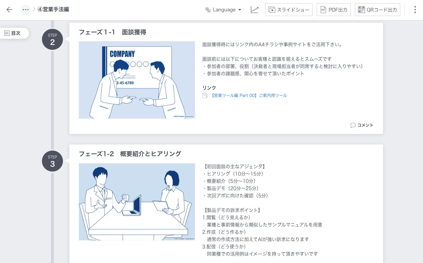 営業手法編:商談プロセス、よくある質問等について学び、効果的な営業手法を習得します。