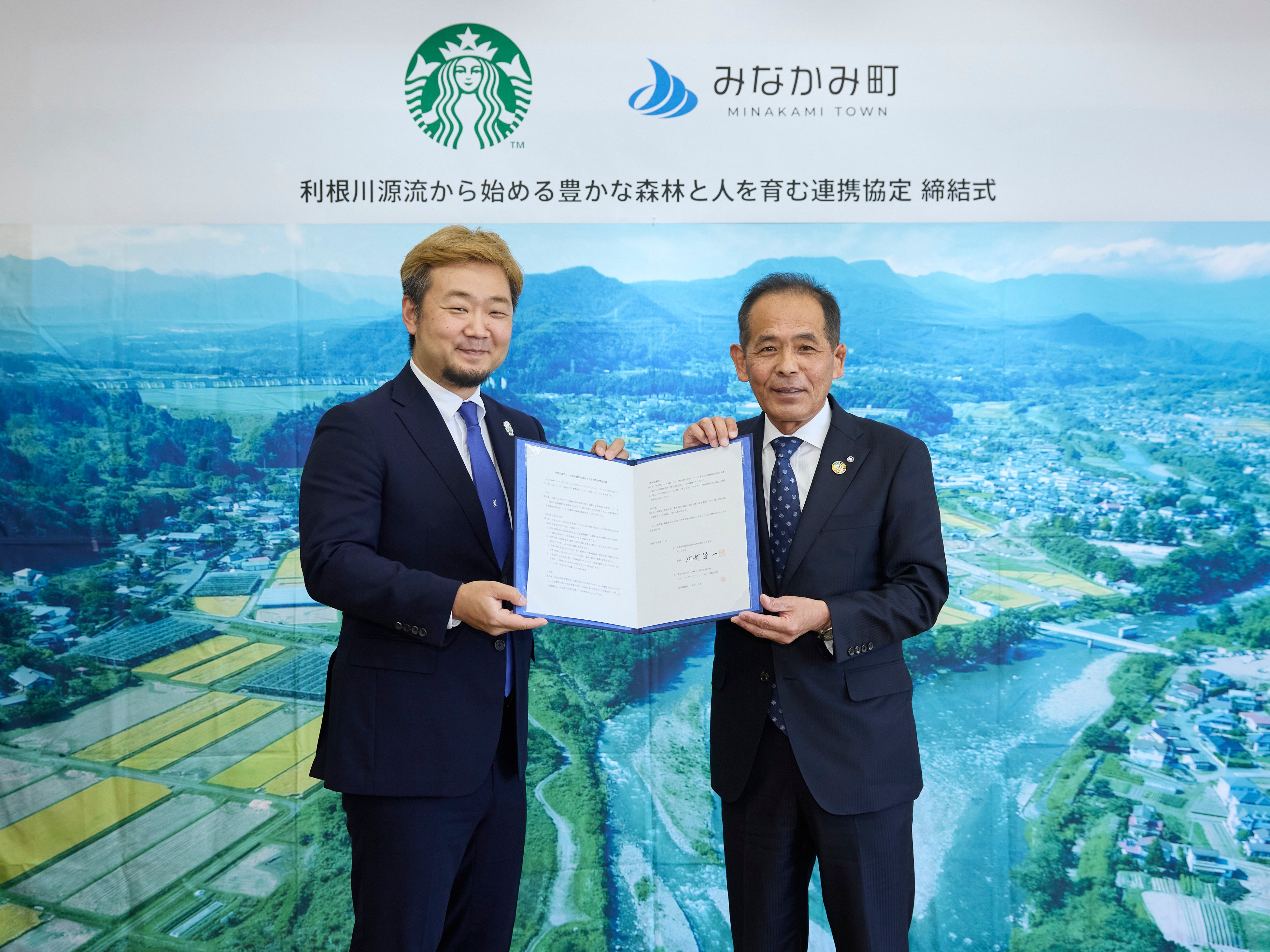 スターバックス コーヒー ジャパン 株式会社[本社所在地:東京都品川区、代表取締役最高経営責任者(CEO):森井久恵]と群馬県みなかみ町(以下みなかみ町)は、2025年4月21日(月)に、連携と協力関係を築き、協働による事業を推進することにより、地域の森林資源や自然環境を活かした持続可能な社会の実現を目指し、気候変動や生物多様性の保全など、社会的課題解決に貢献することを目的とした「利根川源流から始める豊かな森林と人を育む連携協定」を締結しました。