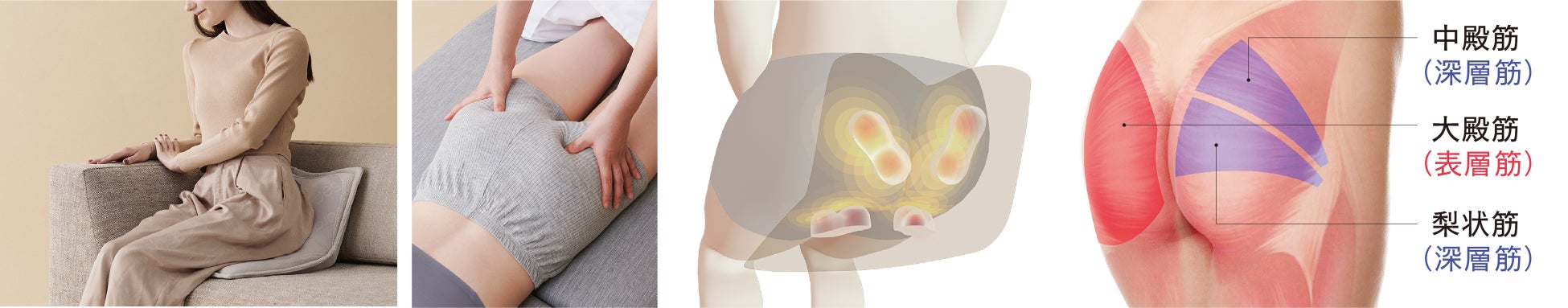 テレワーク等で座りっぱなしの「お尻のこり」をパワフルにもみほぐす新感覚マッサージャー