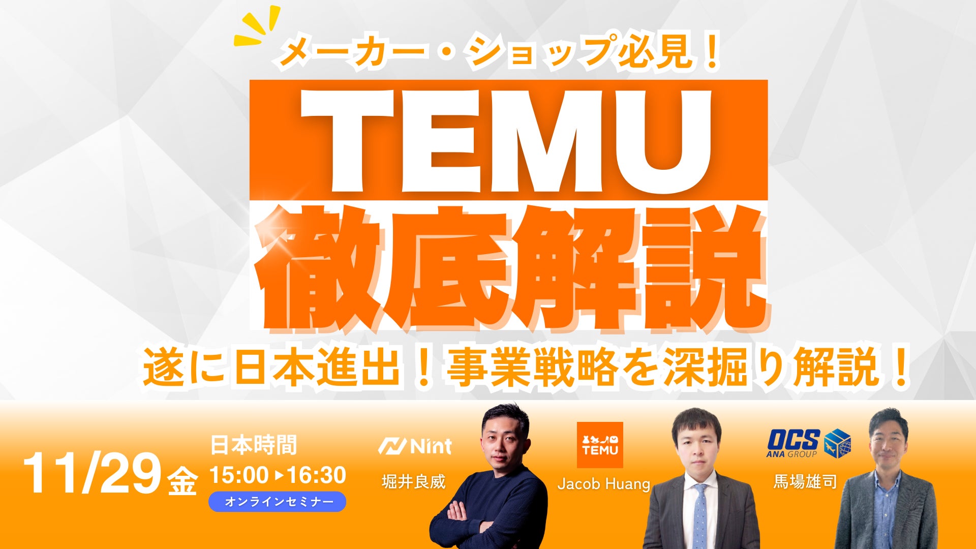 株式会社Nint(本社:東京都新宿区、代表取締役:吉野順子 以下、「Nint」)は、越境EC市場で急成長を遂げている注目のプラットフォーム「TEMU」の日本市場責任者と、越境EC物流の専門家を招いたセミナーを2024年11月29日(金)に開催いたします。今回のセミナーでは、TEMUの日本事業戦略や越境EC物流に焦点を当て、2025年に向けたEC事業戦略を考える皆様にとっては必見の内容となっております。
