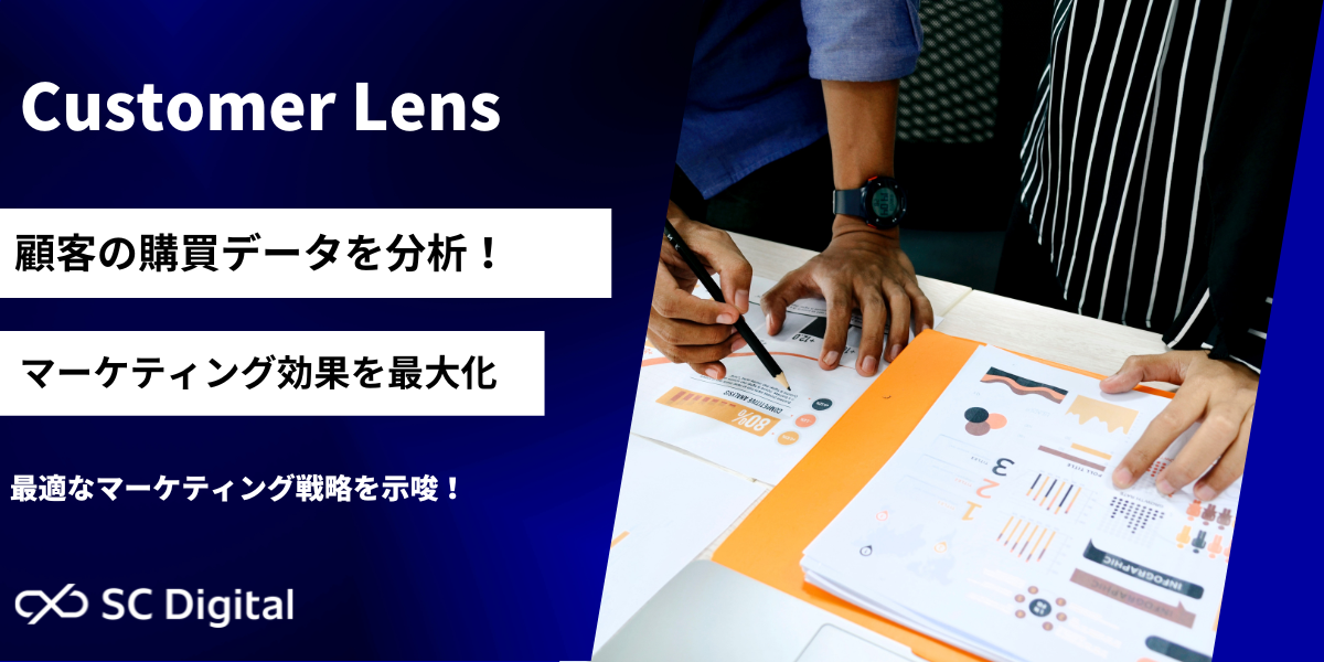 「Customer Lens(カスタマーレンズ)」は、顧客購買データ分析をもとに顧客育成の最適なシナリオを導き出し、マーケティング効果を最大化する入り口として活用いただけるサービスです。