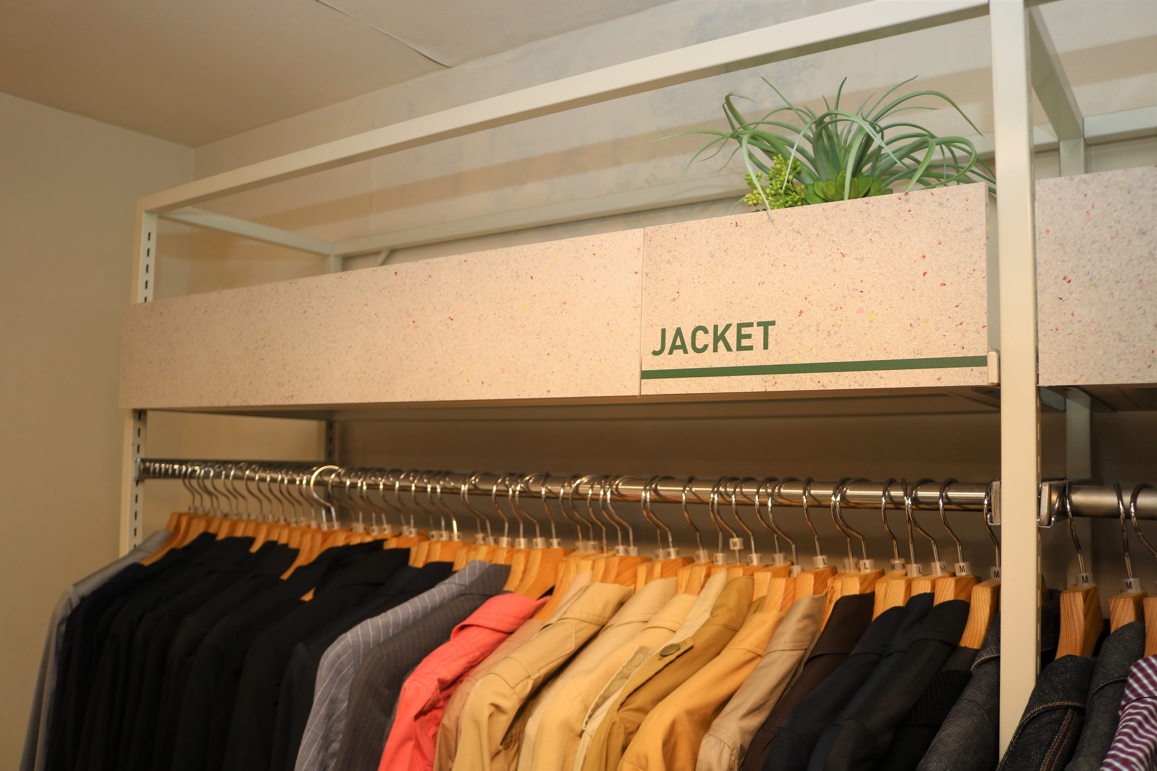 2009年にスタートした「オンワード・グリーン・キャンペーン」にてお預かりしたお客さまの不要になった衣料品を、自社で4~5回の検品を行い、販売基準に達したリユース衣料品を販売している店舗です。常時3,000点以上のオンワードブランドのリユース衣料品を取り揃え、チャリティー価格で提供し、収益は全て当社のサステナブル活動に活用しています。