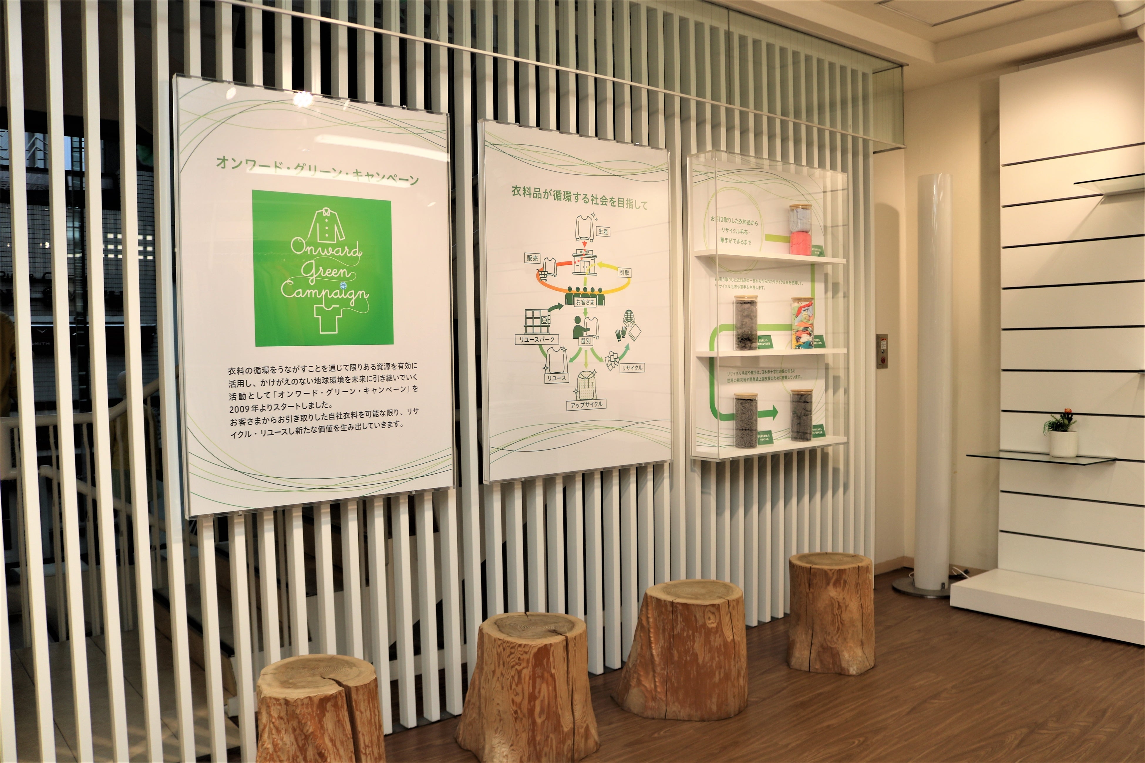 ・「オンワード・グリーン・キャンペーン」にてお預かりしたお客さまの不要になった衣料品から製作した新什器の導入