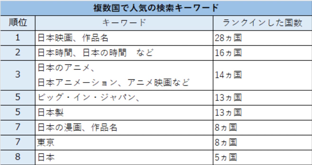 「日本映画」という検索キーワードは、今回の調査対象の39カ国・地域のうち、28カ国・地域で人気とされていました。