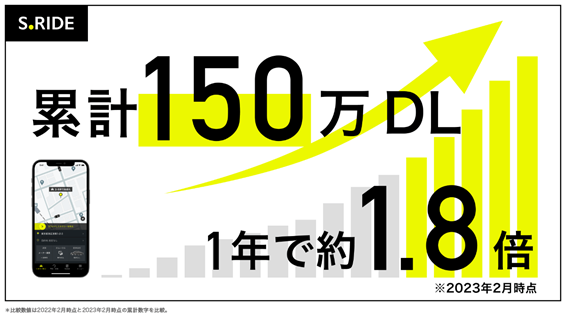 ダウンロード数に関しては、2022年7月以降顕著に増加しており、S.RIDEアプリの使いやすさやタクシーのつかまりやすさが支持されていることや、新型コロナウイルスの規制緩和に伴いタクシー利用の需要が増加したことも要因の一つと推察されます。