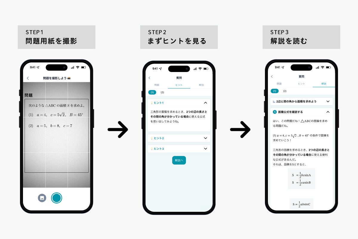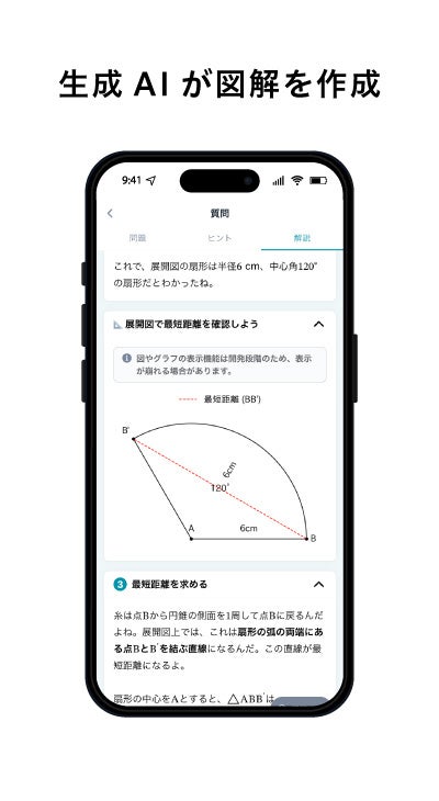 さらに、AIが生徒の学年や学習指導要領に基づいた最適な解法を検討。応用的な解法ではなく、学校で一般的に学ぶ解法で解説できるようになっています。