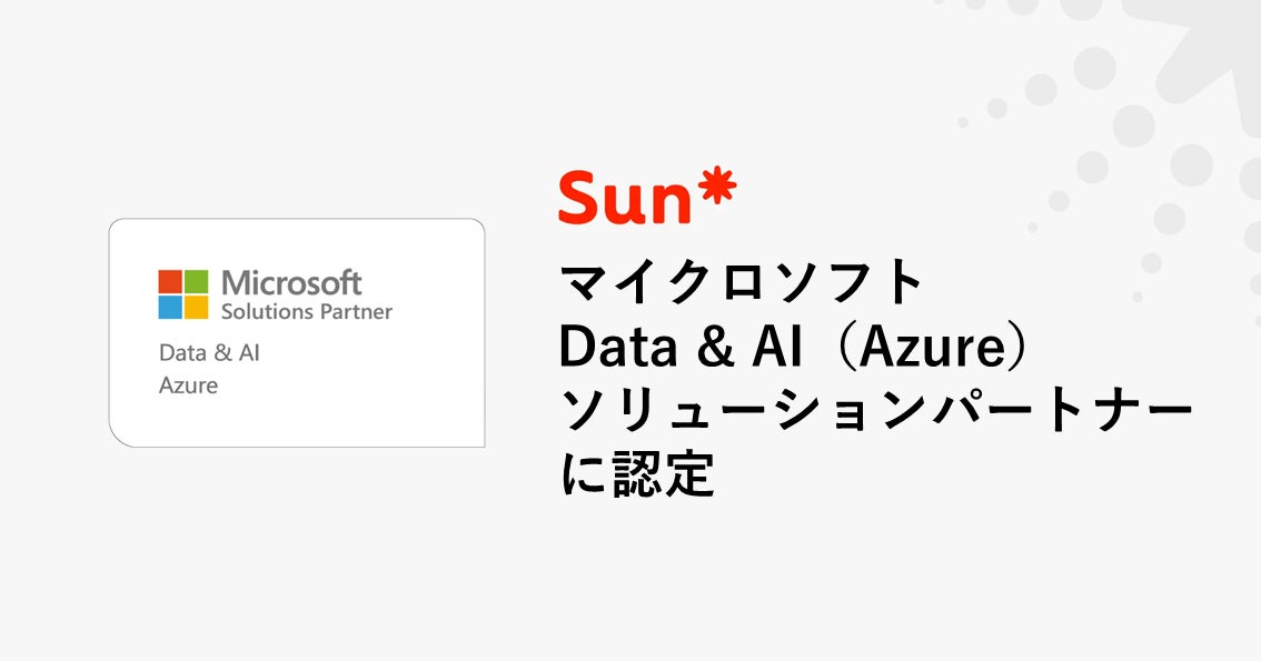 株式会社Sun Asterisk(本社:東京都千代田区、代表取締役:小林 泰平、以下「Sun*」)は、マイクロソフトのパートナー認定プログラム「Microsoft AI Cloud Partner Program」において、「Data & AI(Azure)ソリューションパートナー」に認定されたことをお知らせします。