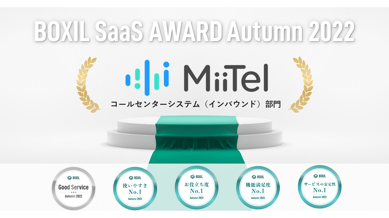 音声解析AI電話MiiTel(ミーテル)、「BOXIL SaaS AWARD Autumn 2022」コールセンターシステム(インバウンド)部門で「Good Service」に選出