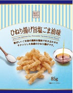 商品特徴:香ばしいごま油の風味を塩味で引き立たせました。サクッとした食感です。