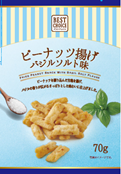 商品特徴:ピーナッツを練り込んだ生地を揚げ、バジルの香りが広がるさっぱりとした味わいです。