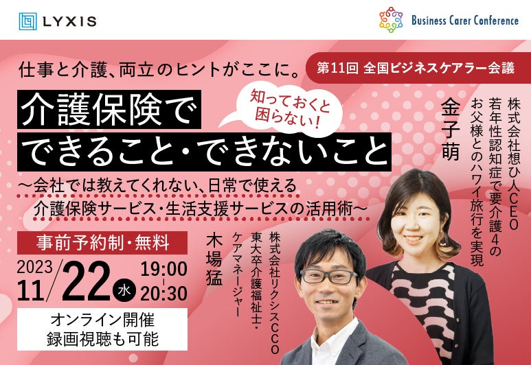 11月22日(水)、現役ビジネスパーソンと各分野のプロが結集するオンラインセミナー『全国ビジネスケアラー会議 仕事と介護、両立のヒントがここに。』開催のお知らせ