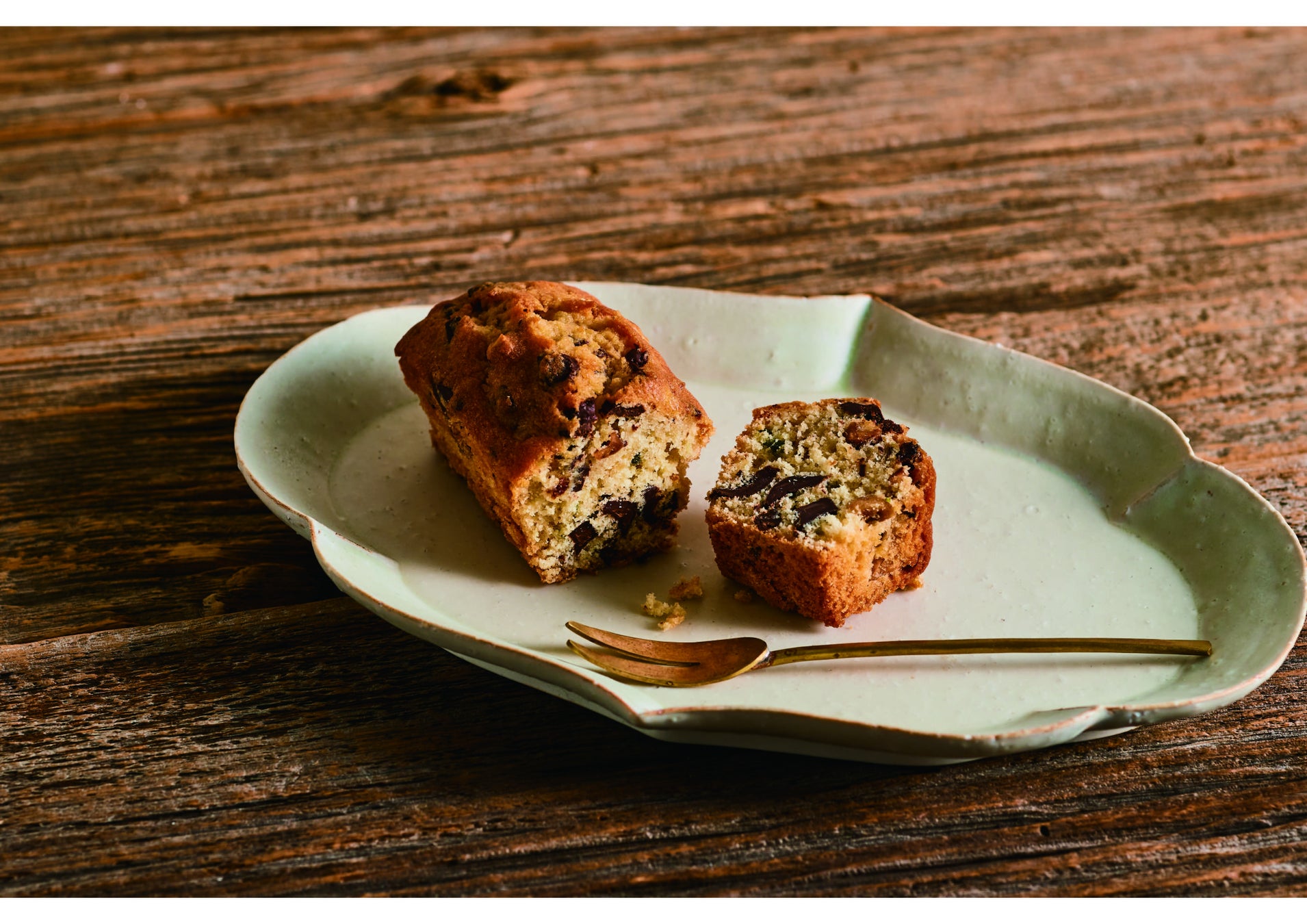 生地にピスタチオ・オレンジピール・ヘーゼルナッツ・レーズン・チョコチップを練りこんだしっとりほろほろ食感が味わえるプチパウンドケーキです。