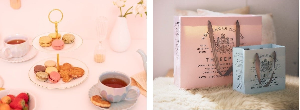 食器各種(写真左)、ロゴ入りギフトバッグ(写真右)
