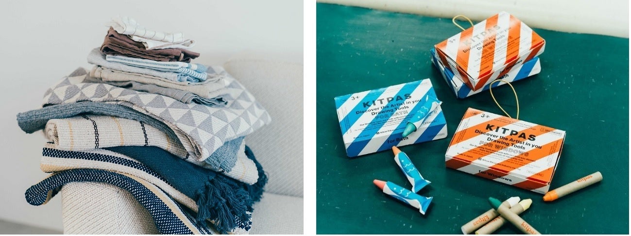 知的障がいを持つ方が製造を担う日本理化学工業の「キットパス」を、オリジナルパッケージで販売(写真右)