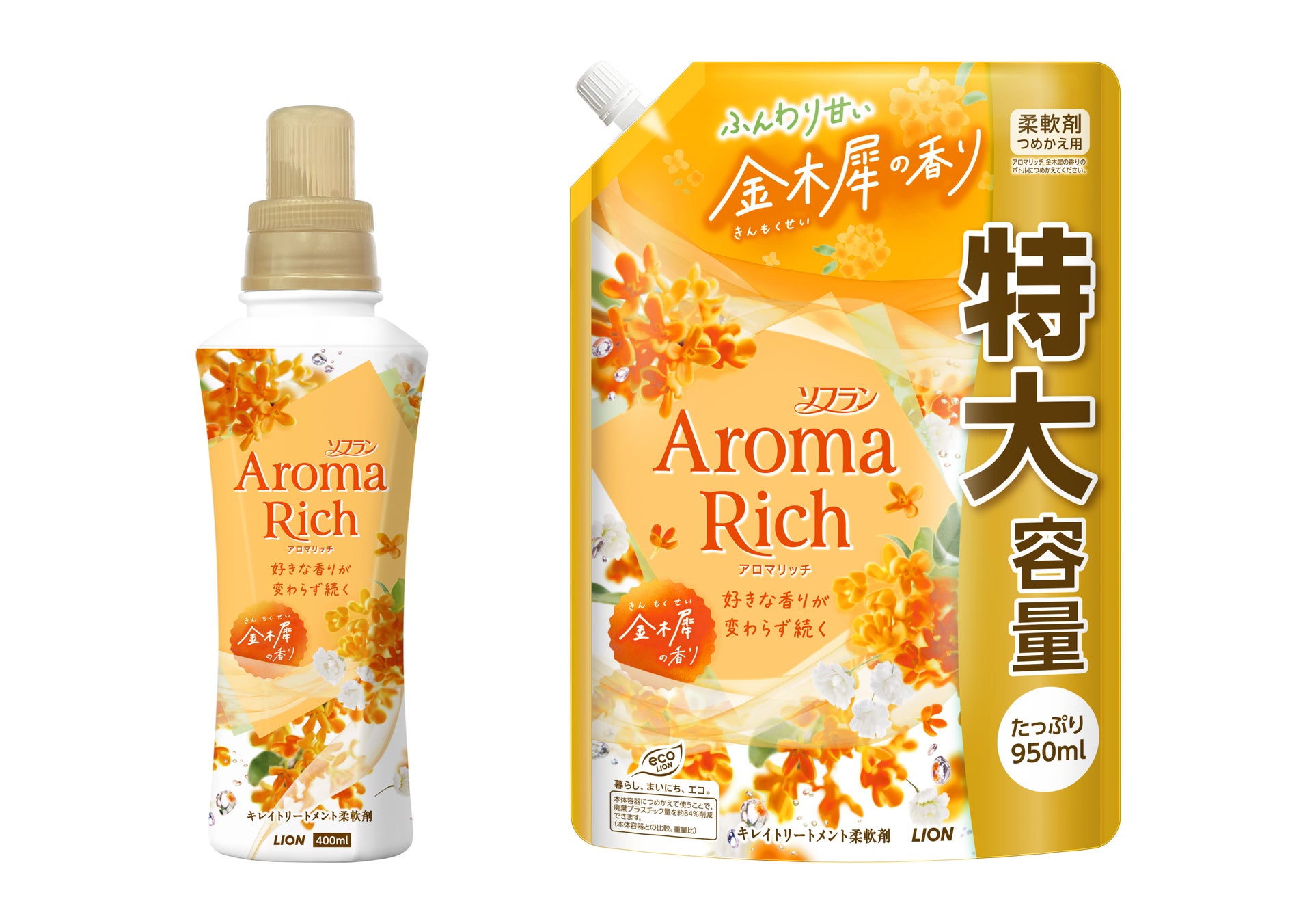 この度、『ソフラン アロマリッチ』から、“秋”を代表する花の金木犀をモチーフにした、ふんわり甘い香りの『ソフラン アロマリッチ 金木犀の香り』を発売いたします。
