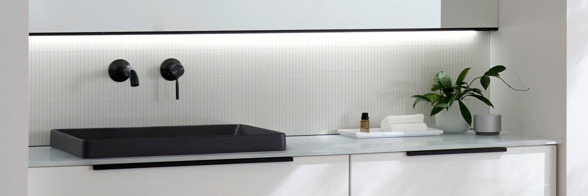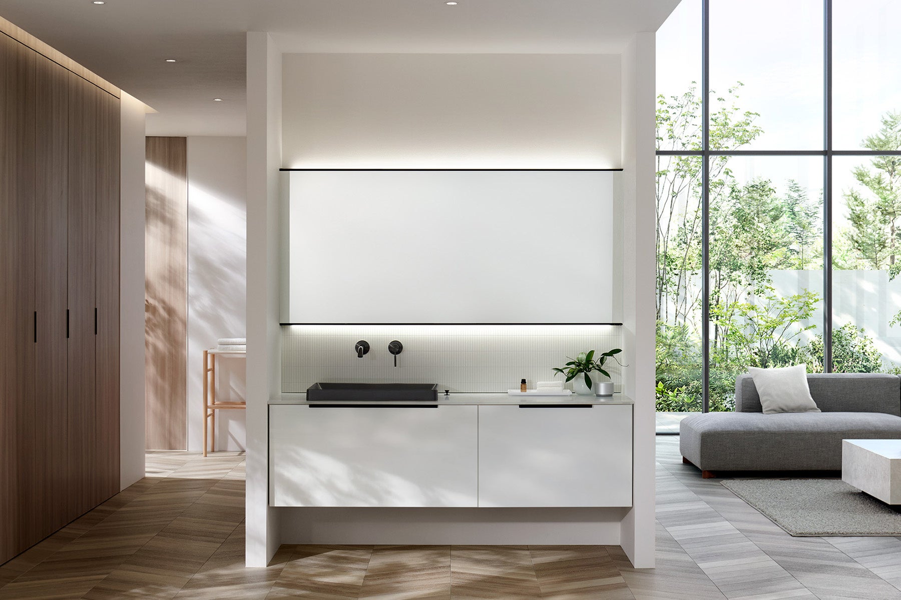 洗面空間の印象を左右するバックパネル、カウンター、キャビネットに新色を追加します。