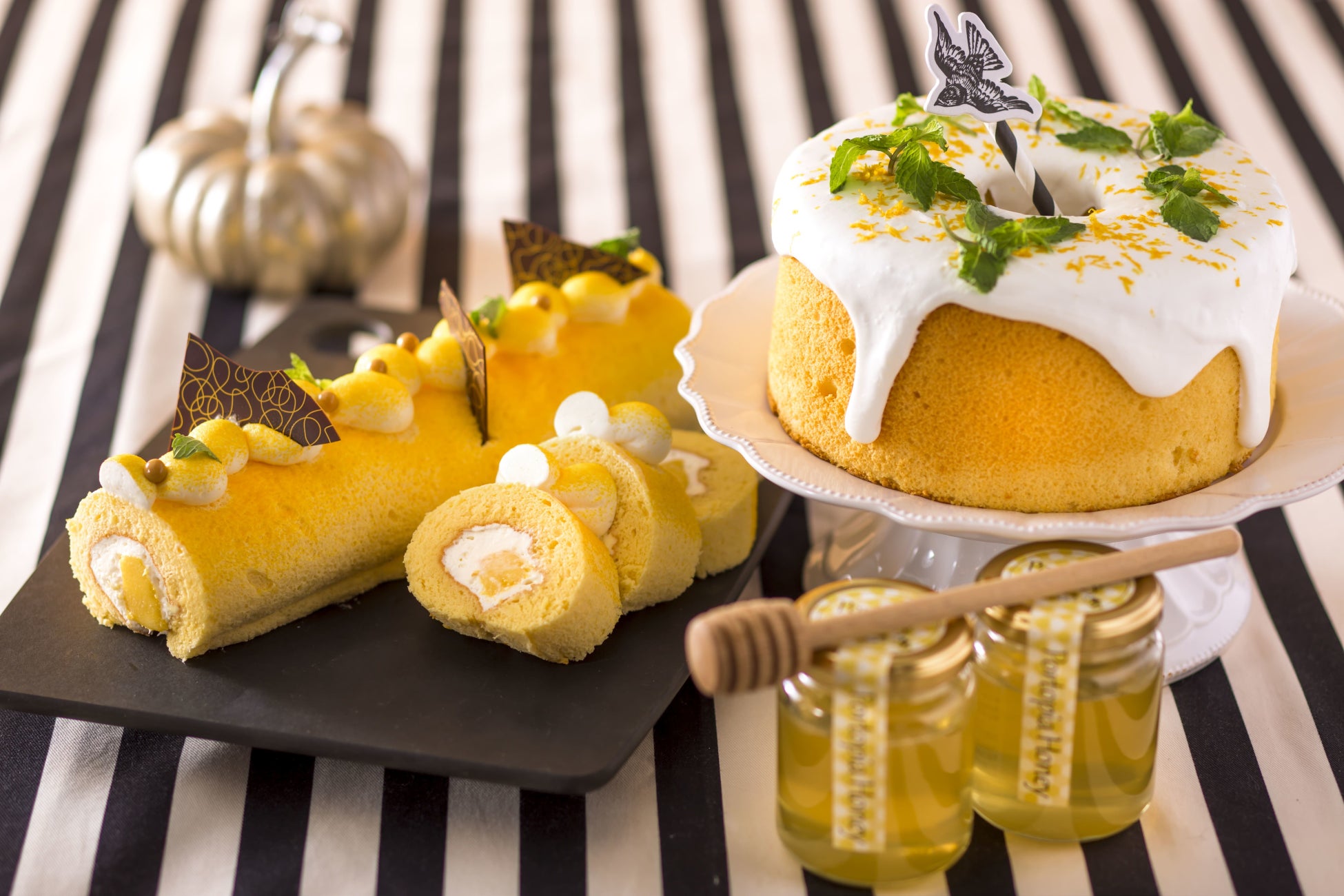 ポートピアホテル敷地内で採取された「ポートピアハニー」を使用し、ふんわりと焼き上げたシフォンケーキと、しっとり生地でクリームを巻いたロールケーキ。はちみつの自然な美味しさをより感じていただくため、シンプルなスイーツに仕上げました。