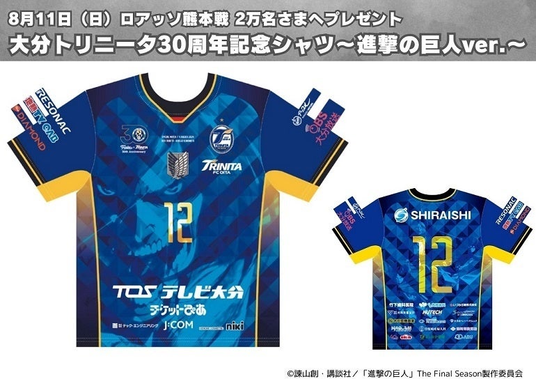 ◆先着2万名さまに「大分トリニータ30周年記念シャツ~進撃の巨人ver.~」プレゼント
