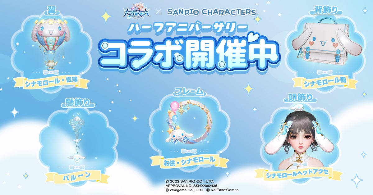 ZLONGAMEは、好評配信中の新作ゲームアプリ、感覚が溶け込むファンタジーライフRPG『AZUREA-空の唄-』にて、10月13日(木)よりリリース半周年を記念して豪華ハーフアニバーサリーキャンペーンを開催するとともに、サンリオキャラクターズとのコラボレーションを開始することをお知らせいたします。