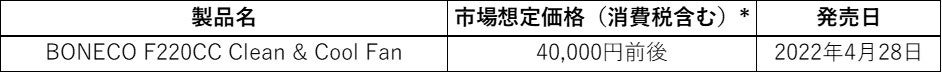 シロカ株式会社(東京都・千代田区)は、スイスの老舗家電メーカー BONECO AG社の2in1空気清浄機「BONECO F220CC Clean & Cool Fan」が、アタラシイものや体験の応援購入サービス「Makuake(マクアケ)」にて目標金額の407%を達成し好評いただいたことを受け、2022年4月28日より一般販売を開始します。