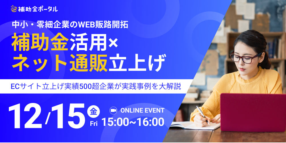 12月15日(金)15:00開催|無料ウェビナー中小・零細企業のWEB販路開拓「補助金活用×ネット通販立上げ」