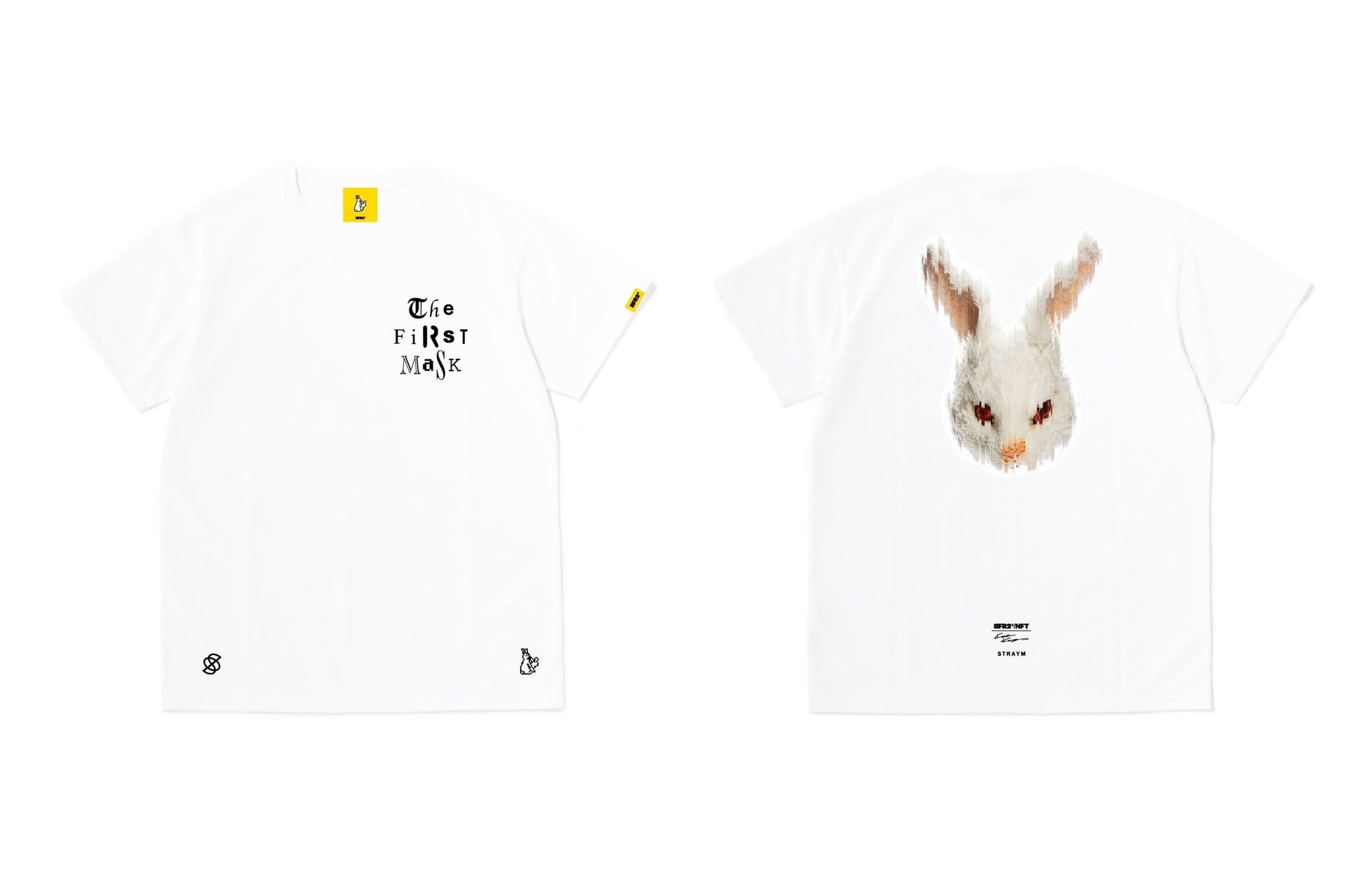 今回の販売を記念し、STRAYMとのコラボレーションTシャツも同時に販売。背面には#FR2初期のラビットマスクをアーティスト河村康輔によるスプリットコラージュされたグラフィックが大胆にプリント。また定番のラビットアイコンにはNFT用の8ビット仕様に。STRAYMのSSロゴも配置されたスペシャルなTシャツとなっています。