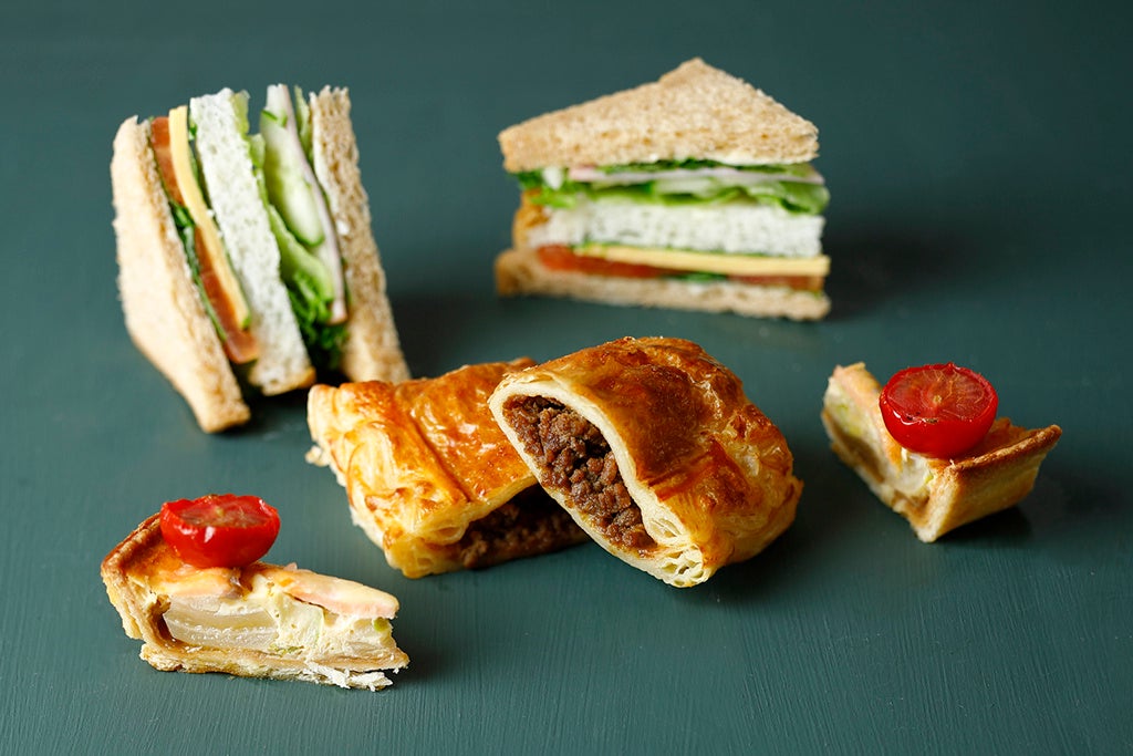 中段は、ミックスサンドウィッチ、ミートパイ、キッシュなどのセイボリーなどクラシカルなラインアップが揃います。ミートパイはウェールズ産ミンスミートがアクセントに。