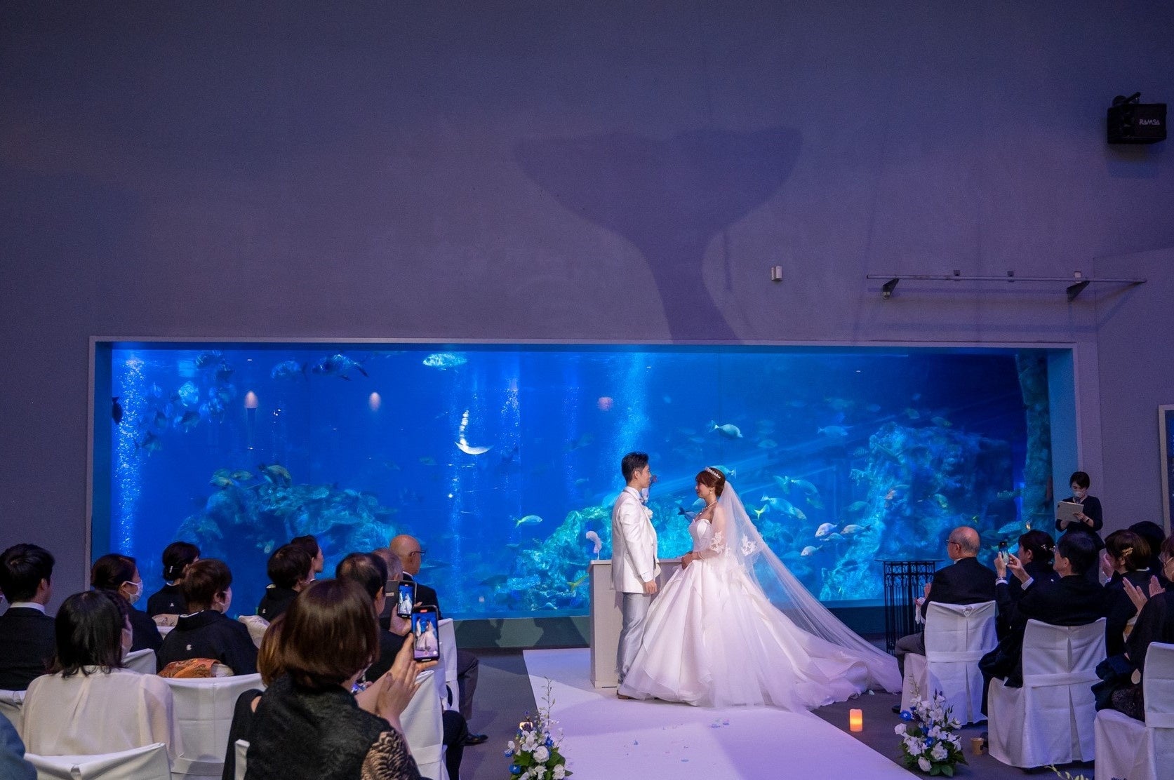 【鳥羽国際ホテル】鳥羽水族館をおふたりの特別な日として独占! ~鳥羽湾の海の中にいるようなブルーの世界でウェディング~