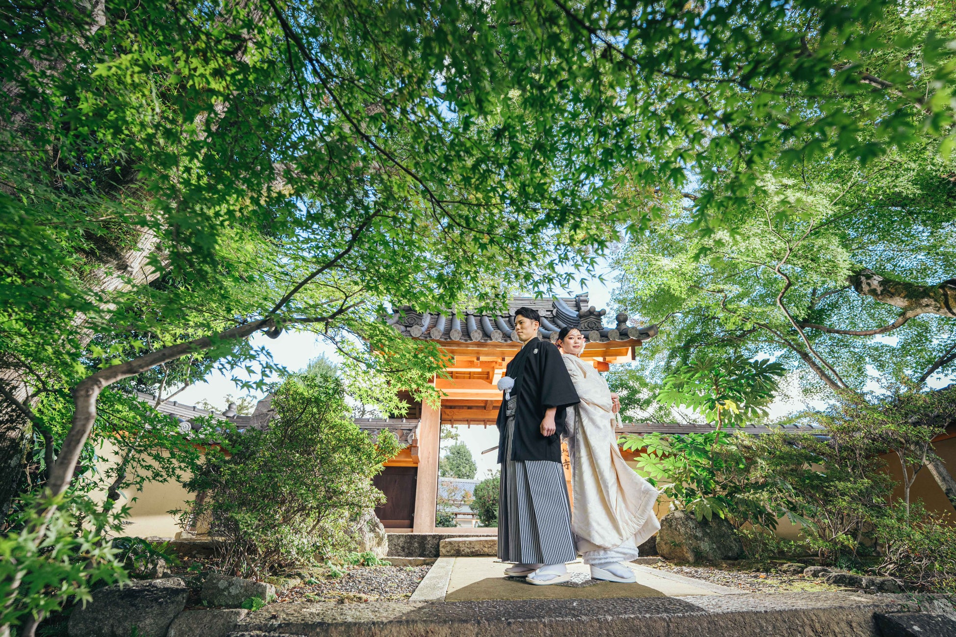 観光地化されていない“知る人ぞ知る名刹”での独占撮影。大阪・京都の喧騒を忘れ、ふたりだけの日本を映画のように残す贅沢。