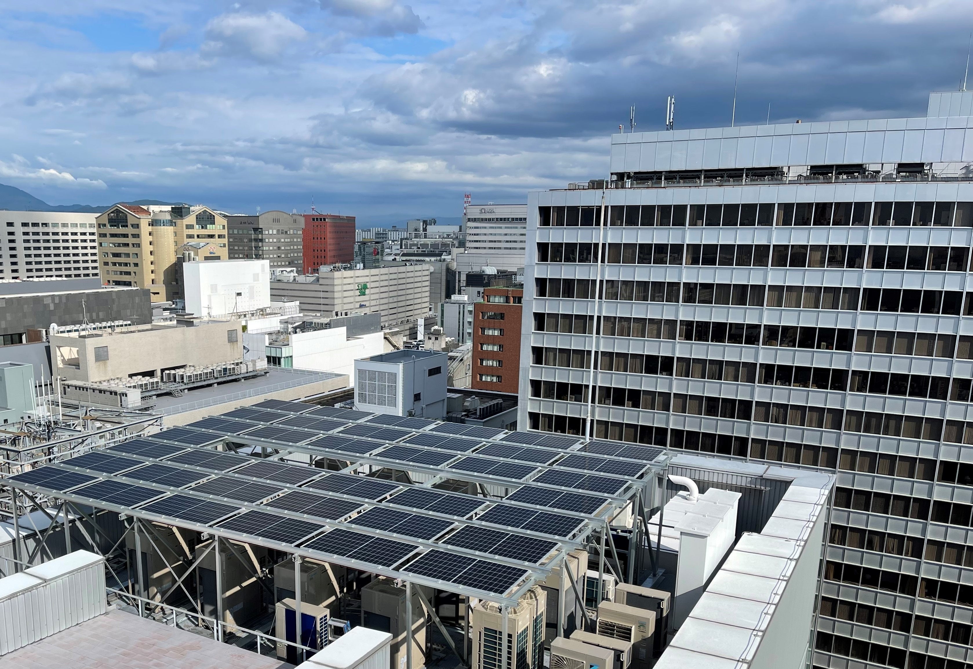 2021年7月から、福岡市天神のピエトロビル屋上に設置したソーラーパネルが稼働し、