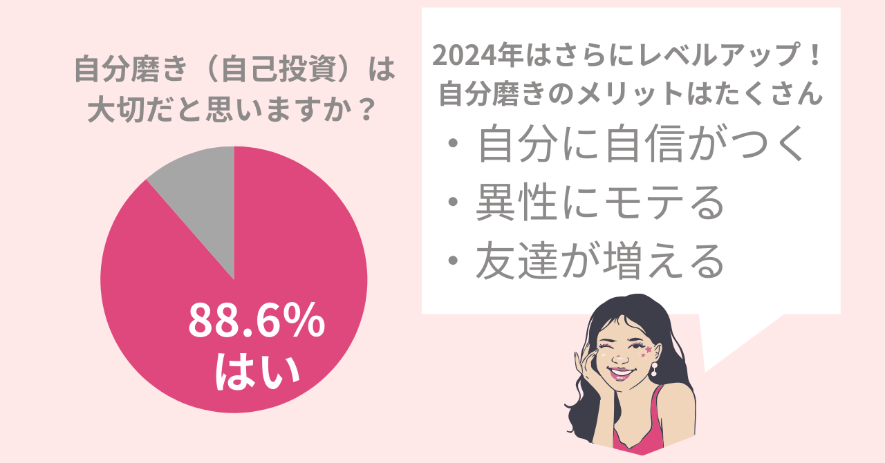 88.6%の女性が「自分磨き(自己投資)は大切だ」と思う