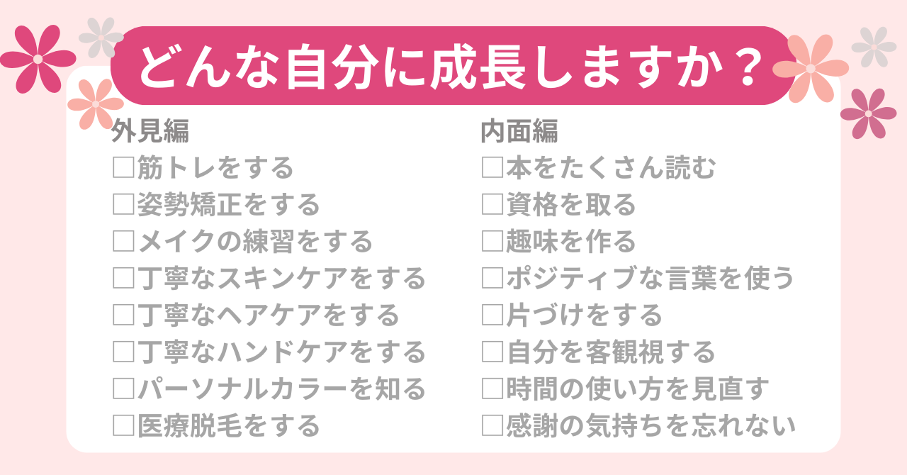 2024年、成長の1年にしませんか?自分磨きをしてモテたい!自信をつけたい!そんな方のための【チェックリスト】を公開