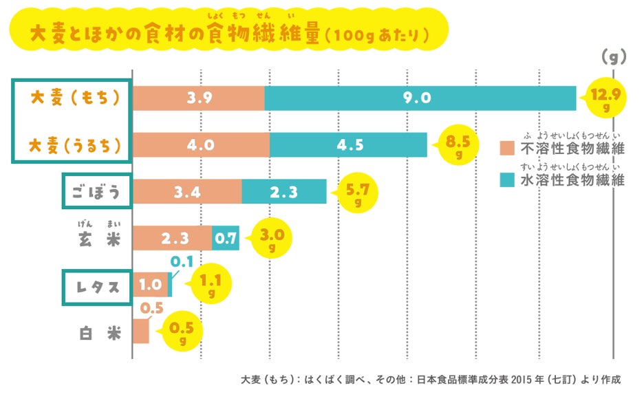 http://mugi-lab.jp/contents/index14.php 大麦BASIC「たっぷり含まれる2種類の食物繊維」