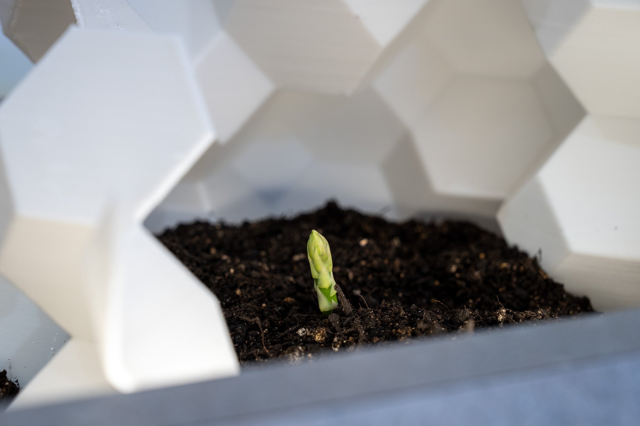 「月面アスパラガス」は、月面での栽培に向けた試行錯誤で得られた知見を、地球の農業の