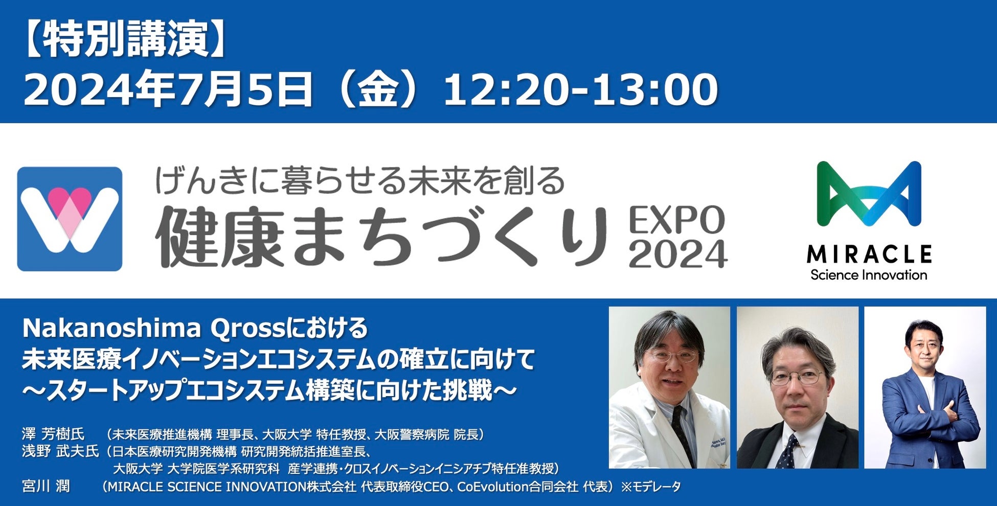 「健康まちづくりEXPO2024」の特別講演にMIRACLE SCIENCE INNOVATION代表の宮川とエグゼクティブアドバイザーの澤 芳樹氏が登壇