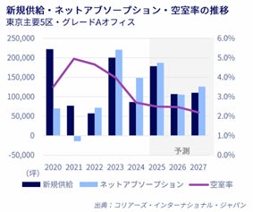 10~12月期は新規供給がなかったものの、43,000坪を超えるネットアブソープション※2を記録し、空室率は2.7%まで低下しました。特に都心部の優良物件では空室が極めて少なく、市場は貸主優位の状況が続いています。