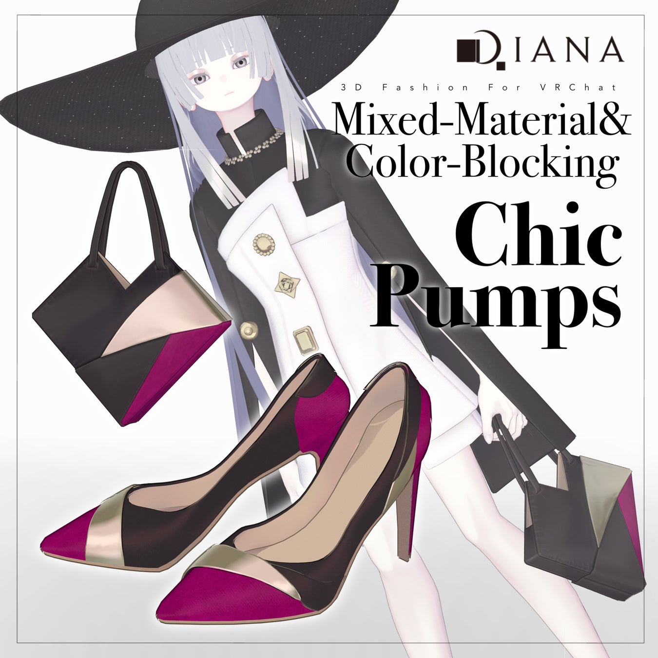 本商品セットには「パンプス(U18233)」「バッグ(メタバースファッションオリジナルデザイン)」「ドレス」「ハット」の4つのアイテムが付属しています。「パンプス」と「バッグ」はダイアナのオリジナルデザイン、「ドレス」「ハット」は、あなたの憧れに寄り添うメタバースファッションブランド『Pochi by KT』とのコラボアイテムとなっております。