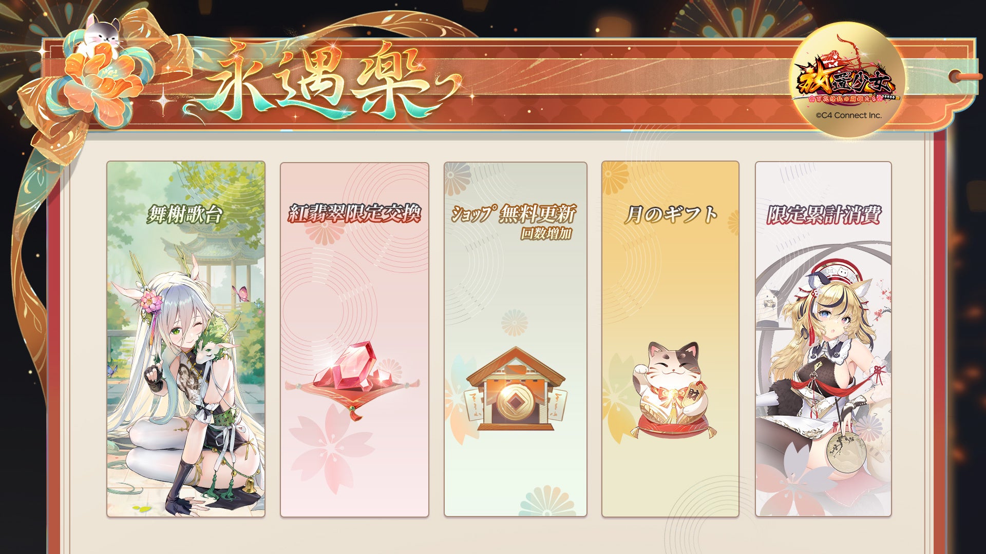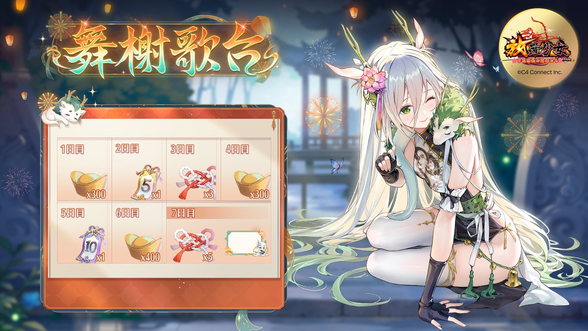 『舞榭歌台』『紅翡翠限定交換』『ショップ無料更新回数増加』『月のギフト』『限定累計消費』など、盛りだくさんのイベントをご用意しております!