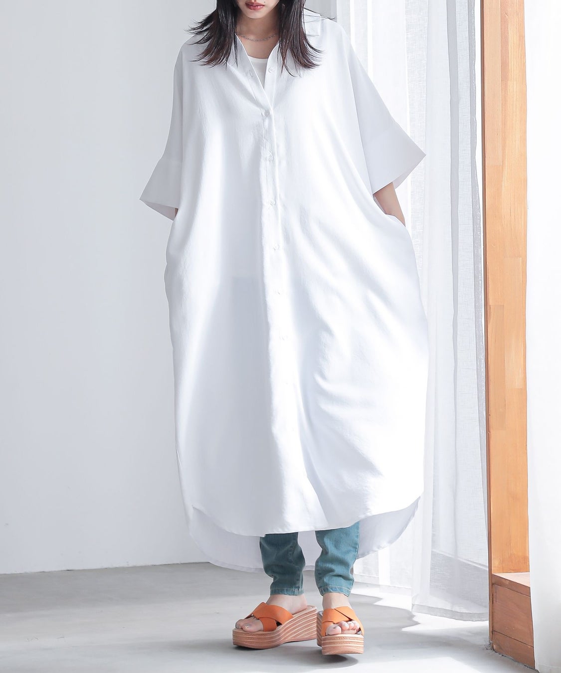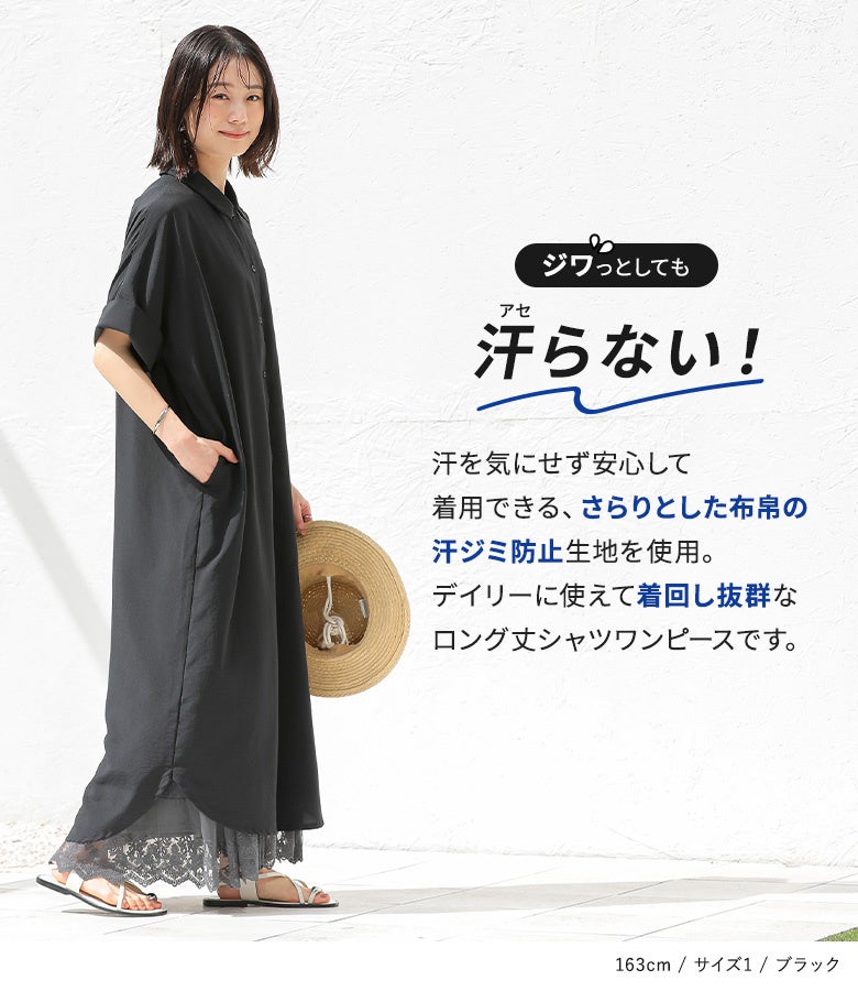 夏に嬉しい汗ジミ防止機能を備え、ワンピースにも羽織りにもなる抜群の着回し力が魅力のロング丈シャツワンピースが登場しました。