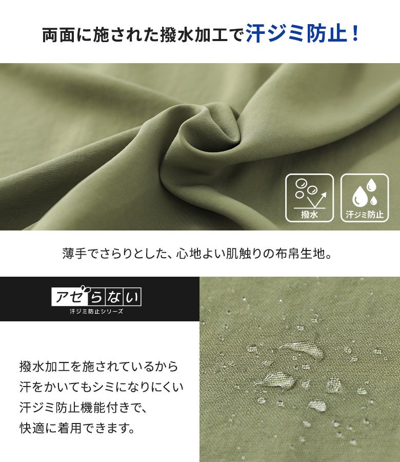 生地両面に撥水加工を施すことで、汗が染みにくい仕組みになっています。