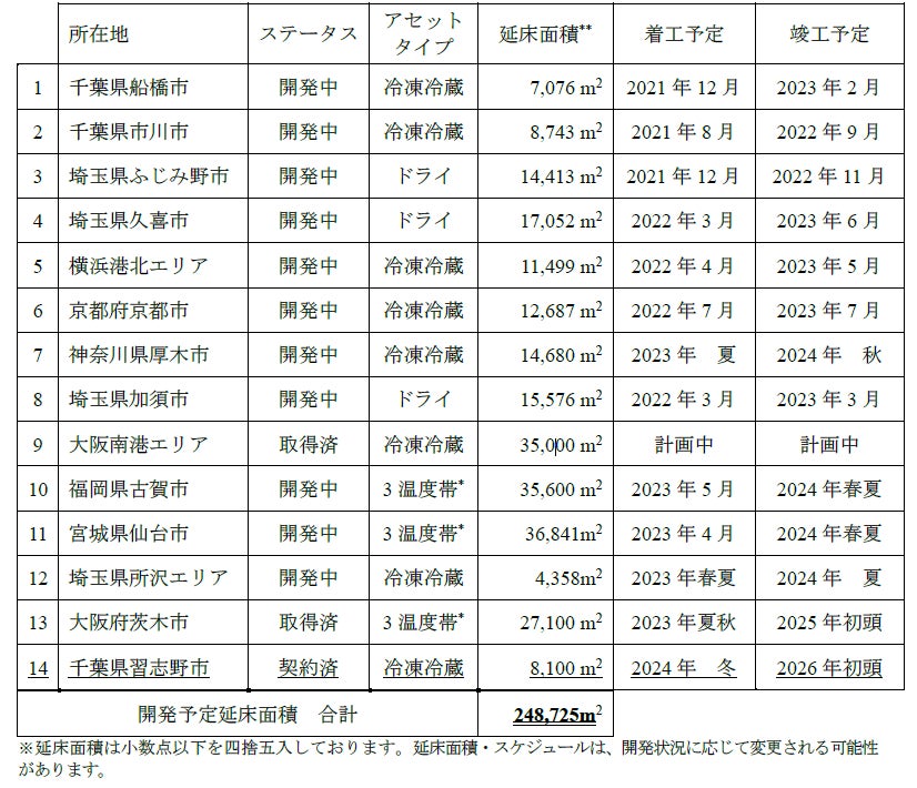 ■霞ヶ関キャピタル物流施設開発予定物件一覧