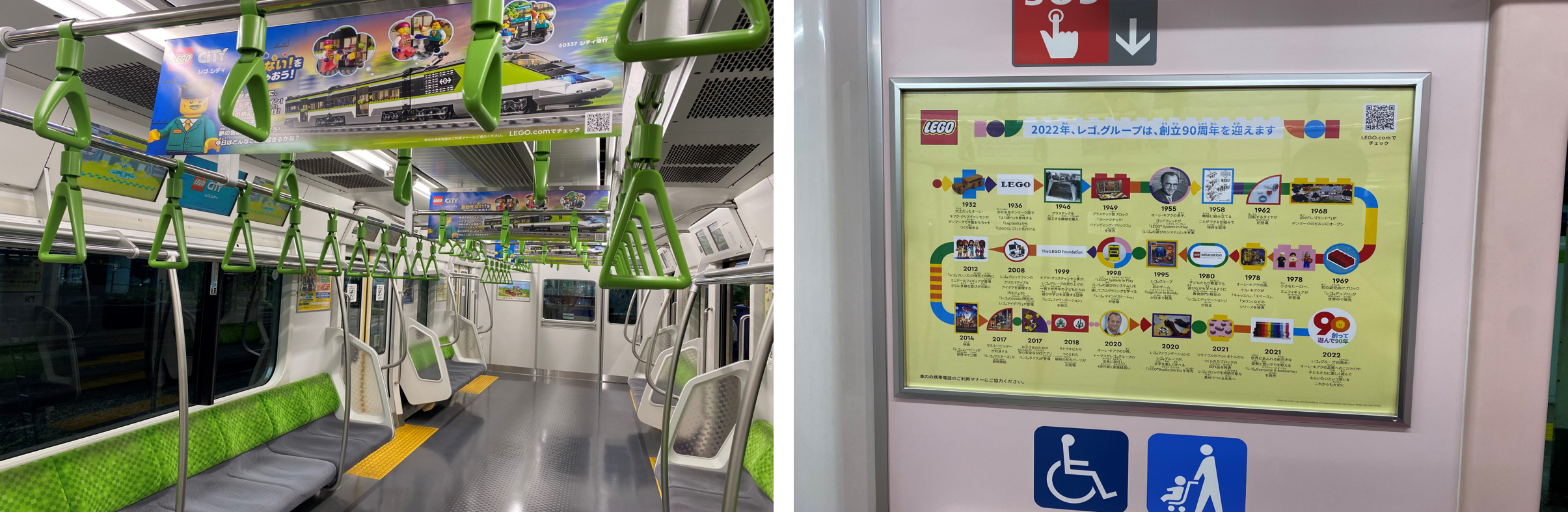 7月22日からJR東日本29駅と東京モノレール1駅で「JR東日本 レゴ®スタンプラリー」を開催しています。イベント開催を記念し、JR東日本 山手線では一編成すべてがレゴ®装飾になった車両も運行中です。(※8月15日まで)車内ではレゴ®シティやレゴグループの歴史をまとめたポスター、90周年の想いがつまったブランドムービーがみなさんをお出迎えします。