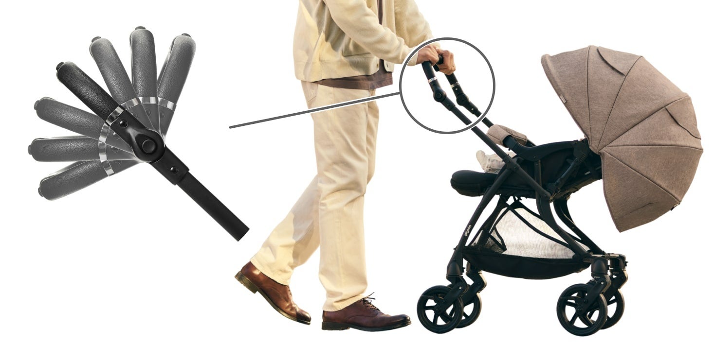 ■ 身長差のあるママとパパでも”押しやすい”、7段階調節が可能なレザー調ハンドル