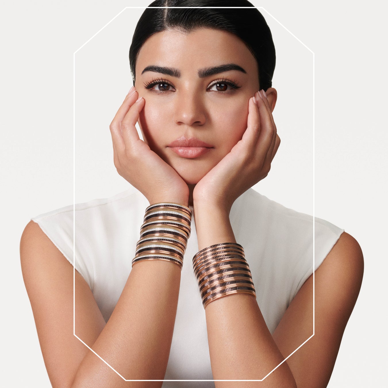 スタイリッシュで洗練されたデザインと、唯一無二の存在感でタイムレスな魅力を放つ「キャトル」。フランス語で「4」を意味するコレクション名にも象徴されるように、メゾンに継承される伝統的な4つのコードを重ねたデザインです。アンバサダーたちが身に纏うのは、ブラウンのカラーが印象的な「キャトル クラシック」。新作のチョーカーやバングルを重ねて、身に着ける人にパワーを与え、力強さと個性を際立たせます。