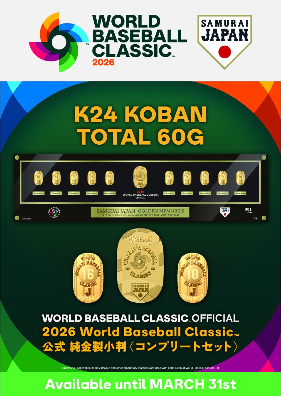 「2026 World Baseball Classic 公式 純金製小判<コンボセット>」