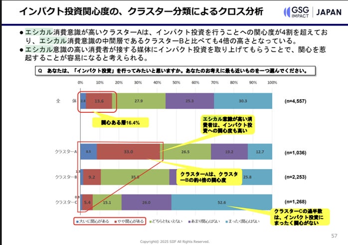 エシカル消費意識が高い人はインパクト投資にも高い関心を示す。